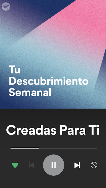 Con Spotify, tienes acceso a un mundo de música. Puedes escuchar a artistas y álbums o crear tus propias playlists con tus canciones favoritas. ¿Te gustaría descubrir música nueva? Elige una playlist creada específicamente para tu estado de ánimo o recibe recomendaciones personalizadas.