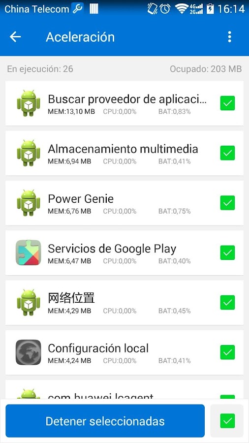 Detiene applicaciones que se ejecuten innecesariamente en segundo plano para liberar espacio en RAM, mantener el dispositivo Android a velocidad óptima, reducir el consumo de batería y prevenir el sobrecalentamiento.