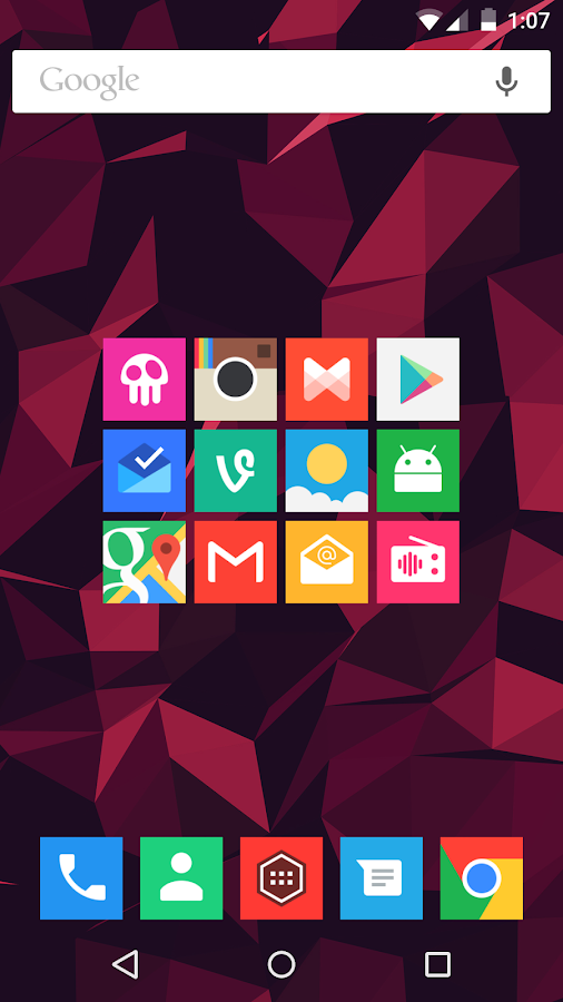 UI Minimal. Bienvenido al pack de iconos que inició la locura de personalización para Android. Esquinas nítidas, colores vibrantes y diseños reconocibles definen la interfaz de usuario mínima. Este es el paquete original plana.