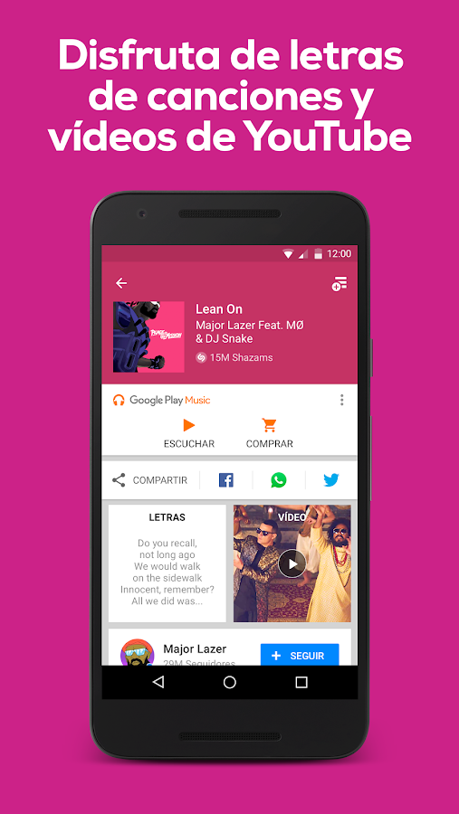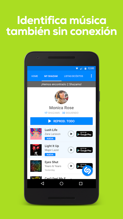 Identifica música de manera instantánea y comparte con tus artistas favoritos el entusiasmo por descubrir nueva música.